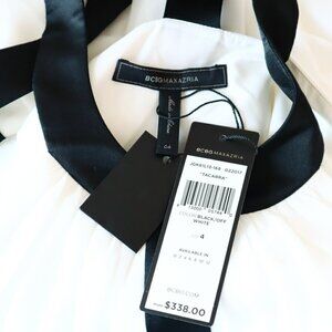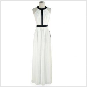 BCBGMaxazria BCBG Tacarra Long Off White w/ Black Trim Eve Gown Dress NWT NEW 4