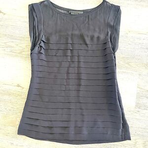 This BCBGMaxazria Black 100% Silk Chiffon Tiered Sheath Blouse is in very good condition.