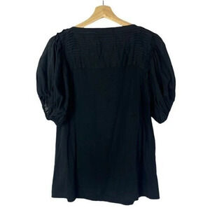 BCBGMaxazria Black Balloon Round Neck Short Sleeve Top L