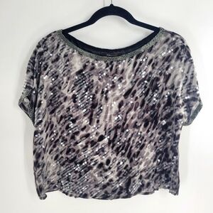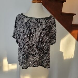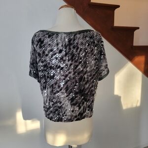 BCBGMaxazria Black Combo Silk Sequin Top New Size S