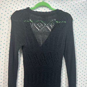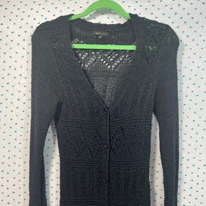 BCBGMaxazria Black Crochet Long Sleeve Tunic Button Up Cardigan Sweater