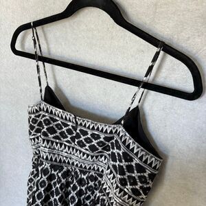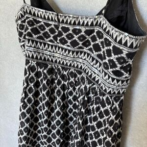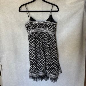 BCBGMaxazria Black White Geo Print Babydoll Sequin Silk Blend Tulle Hemline Y2K
