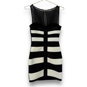 BCBGMaxazria Black White Stripe Satin Mesh Mini Cocktail Dress, Size 2 Y2K VTG