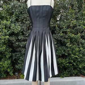 BCBGMaxazria Black White Striped Formal Fit Flare Dress Women’s 0