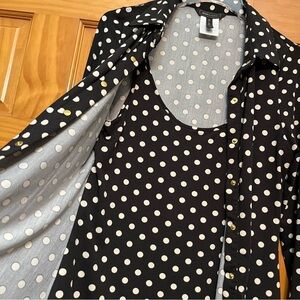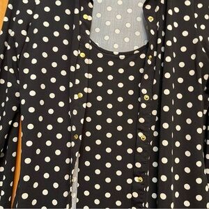 BCBGMaxazria Black/White Polka Dot Top Size Medium EUC Snap front with attached tank top