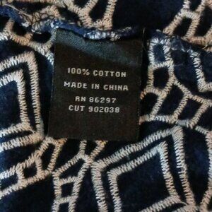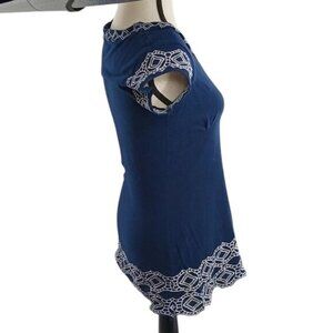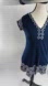 BCBGMaxazria Blouse Blue Embroidered Empire Waist Short Sleeve Size Large