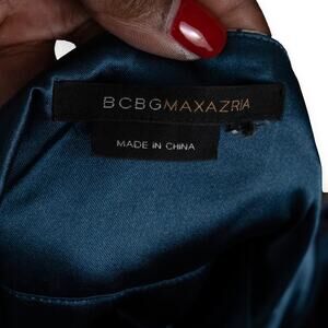 BCBGMaxazria Blue Cream Silk A-line Sundress. Batik print, v-neck. Satin sash, adjustable straps. Knee length. Excellent used codition. Figure flattering. No size tag.