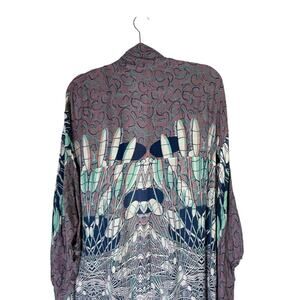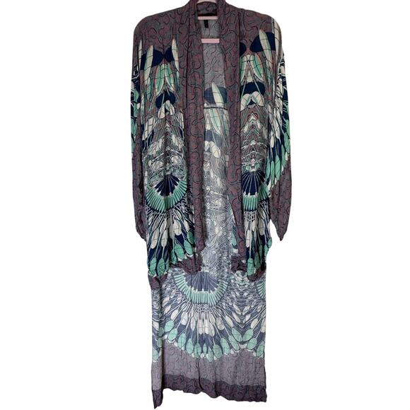 BCBGMaxazria Blue Print Boho Hi-Low Cutout Wing Sleeves Kimono Cardigan Size XS