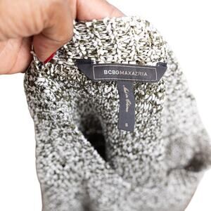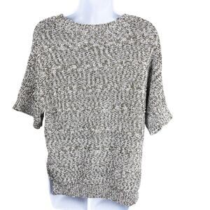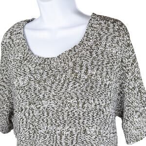 BCBGMaxazria Boxy White Green Variegated Knit Short Sleeve Ribbed Sweater S