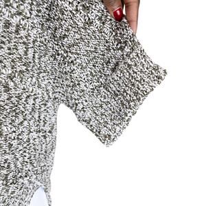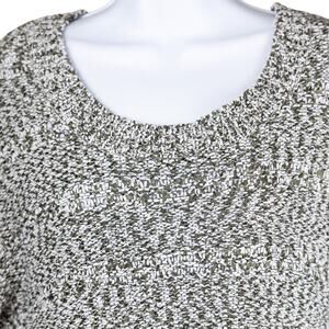 BCBGMaxazria Boxy White Green Variegated Knit Short Sleeve Ribbed Sweater SRelaxed fit, hi-lo ribbed hem. Round neck. Dolman sleeves. Excellent used condition. Wool, linen, cotton blend. Materials tag is missing, but appears to be Leah Sweater.