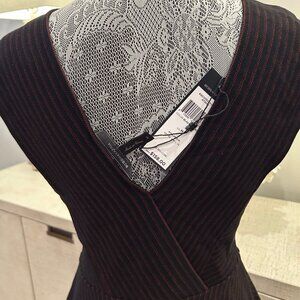 BCBGMaxazria Chic blouse with black and red stripes. Flattering V-neck design. F