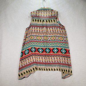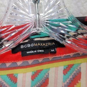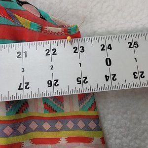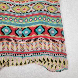 BCBGMaxazria Chiffon Collar Tribal Colorful Sheer Hi Low Western Boho Tunic Top