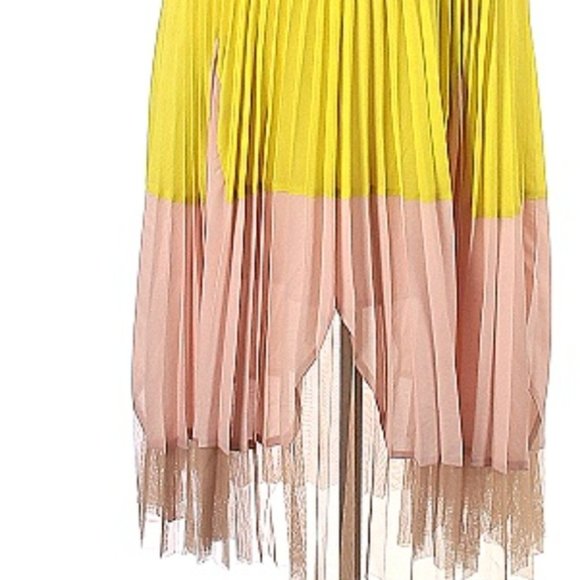 🌜 BCBGMaxazria Corrine midi skirt with chiffon color block size M