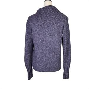 BCBGMaxazria Deep Purple Chunky Knit Wool Blend Long Sleeve Cardigan Sweater