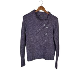 BCBGMaxazria Deep Purple Chunky Knit Wool Blend Long Sleeve Cardigan Sweater