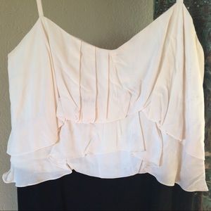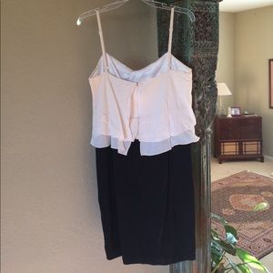 NWT BCBGMaxazria dress but still needs some TLC. It's been in the back of my closet forever because I never got the courage to wear it. Could probably stand to be dry cleaned? There's a few spots on the silk top; dust that settled in? And a couple light marks on the skirt. It's a really cute dress ... but needs a good cleaning. SZ 10, black skirt, cream/ivory top.