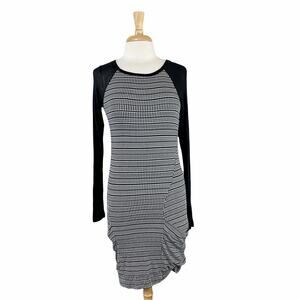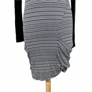 This is a fitted sheath from BCBG Maxazria with pockets, and longsleeves. It's the "Crista" dress in Black / Comb. There are no flaws or marks :)