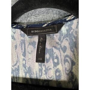 BCBGMaxazria Dress Women XS Long Sleeve Blue Wrapped Midi Artsy Classic Timeless
