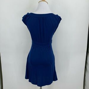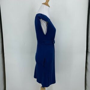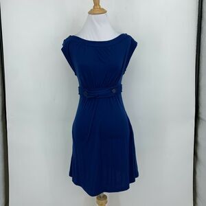 BCBGMaxazria Dress Women's Size XS Blue Attached Belt Boat Neck Career *Read
