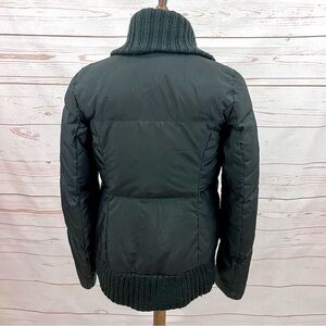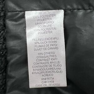 BCBG Maxazria Duck Down Fill Puffer Parka Shawl Collar Winter Coat. Style OLH80710. 2 side zip pockets. Oversized sweater knit shawl collar and one side wrap button closure. Gently worn good condition.