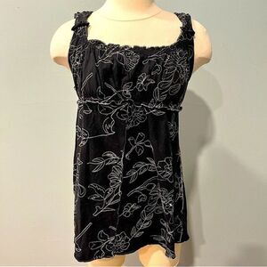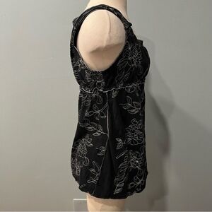 BCBGMaxazria Embroidered Floral Black & White Sleeveless Blouse Size XL