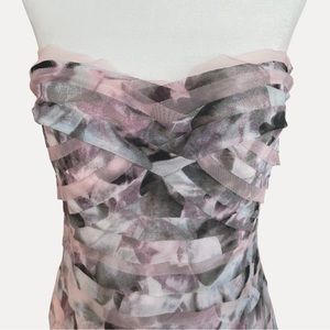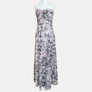 BCBGMaxazria Erika Tulle Tiered Strapless Gown Watercolor Agate Medium EUC