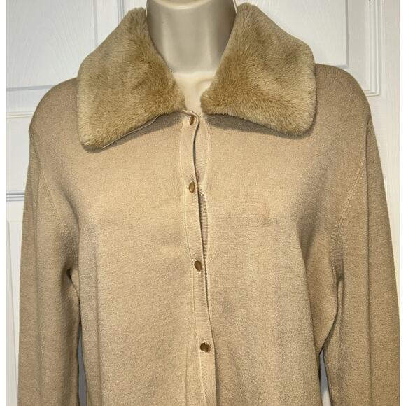 BCBGMaxazria Faux Fur (removable) beige tan Cardigan Women Timeless Luxury Sz L