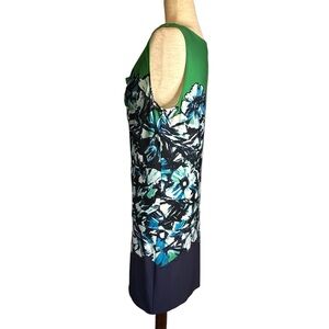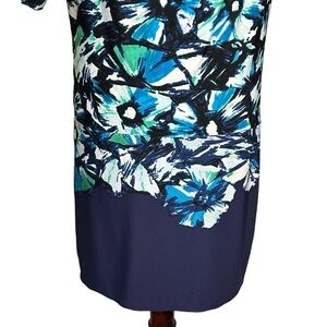 BCBGMaxazria Floral Emerald Combo Green Blue Draped Dress One Sleeve Small