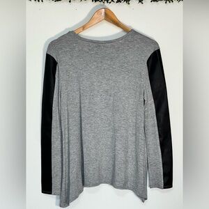 BCBGMaxazria Heather Grey Faux Leather Sleeve Tunic Medium