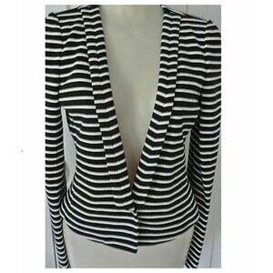 BCBGMaxazria Hendricks Black White Striped Blazer Jacket Size L