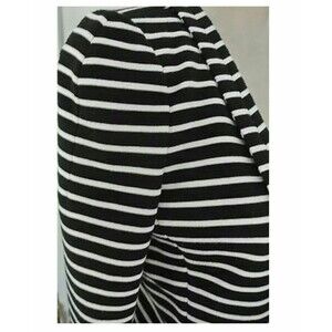 •A distinctively striped jacket with a strong shoulder and asymmetrical jacket• -Thin lapel Collared neck -Long sleeves -Shoulder pads -Snap front closure Cotton, Polyester, and Modal blend -Black & White