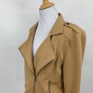 BCBGMaxazria Jacket Womens M Medium Camel Moto Zip Notch Shoulder Pad Pockets