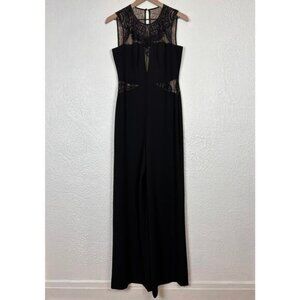 BCBGMaxazria Laden Lace Blocked Wide Leg Jumpsuit Black Size 6