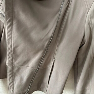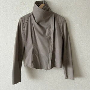 BCBGMaxazria Leather And Knit Jacket Drape Gray Medium.