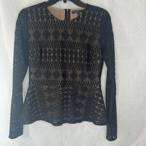 BCBGMaxazria Michelle Black Lace Peplum Full Back Zip Top Size Small