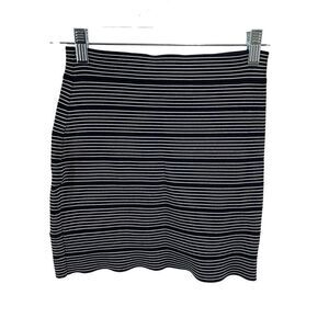 BCBG Maxazria Mini Pencil Skirt Alisa Bandage Striped Pull-On Black White Medium