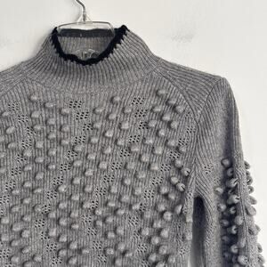 BCBGMaxazria Mock Neck Sweater XS Gray Popcorn Stitch Merino Wool Blend NWOT