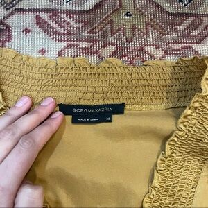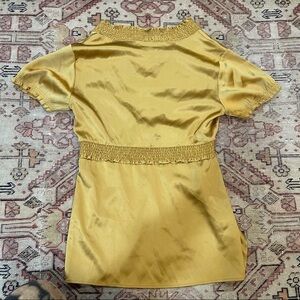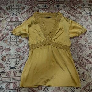 BCBGMaxazria Mustard Yellow V neck Silk Blouse