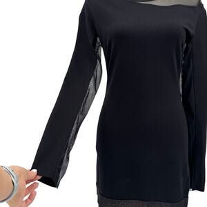 BCBGMaxazria NWT Black Knit Mesh Shoulder Long Sleeve Mini Sheath Dress