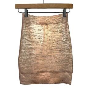 BCBGMaxazria | NWT Silvie Rose Gold Metallic Foil Body-con Bandage Mini Skirt