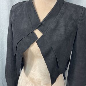 BCBGMaxazria Norton Cropped Faux Suede Black Open Tuxedo Jacket XXS Whimsigoth