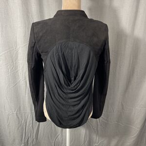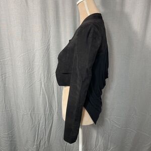 BCBGMaxazria Norton Cropped Faux Suede Mixed Media Black Jacket Size XXS EUC.