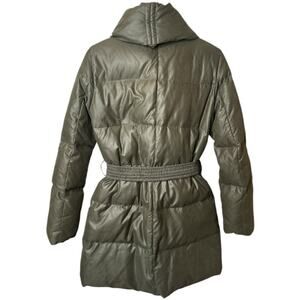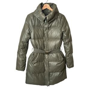 BCBGMaxazria Olive Green Belted High Neck Duck Down Puffer Jacket Women's Size 7