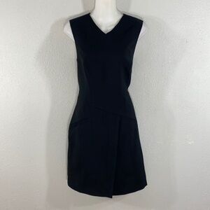 BCBGMaxazria Phoebe black sleeveless dress. Polyester rayon spandex. Has stretch. Lined. Sleeveless. Flap over skirt. Approx 36.5 inches long. Size small