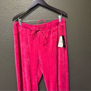 BCBGMaxazria Pink Spell Out Velour Baggy Track Pants