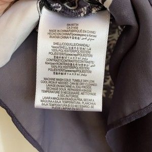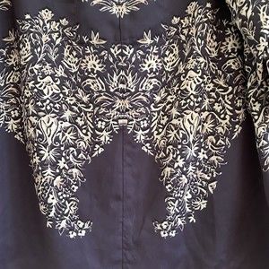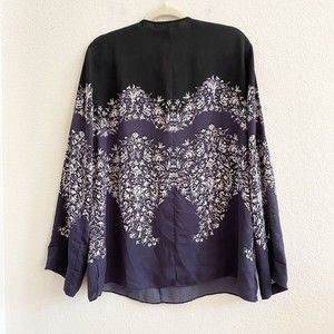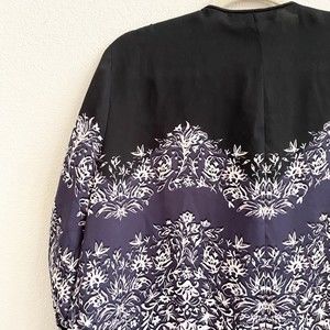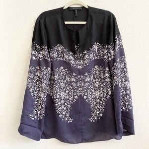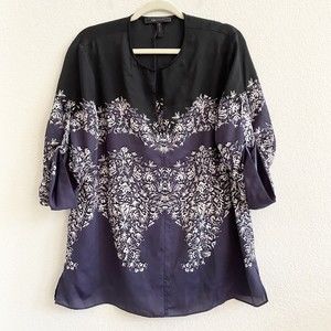 BCBGMaxazria Print Boho Top Black Navy Blue White Floral Paisley Roll Tab Size L
