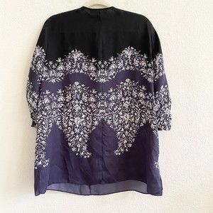 Beautiful lightweight top with adjustable sleeves in a paisley floral pattern.