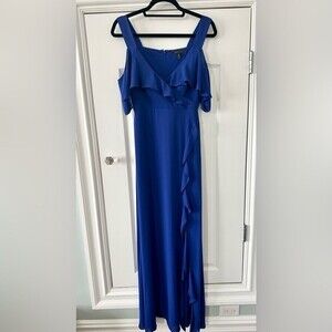 BCBGMaxazria Royal Blue Ruffle Shoulder Gown Size 2
