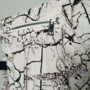 Cream colored with a brown marble detail. Stretchy fabric, super soft. Has a zipper detail on one shoulder. Has a draped piece in the front. 95% modal 5% spandex. Office, workplace, classy, boss, neutral, mobwife, professional, polished