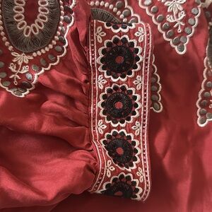 BCBGMaxazria Runway Collection 100% silk rust embroidered mini dress fall tie
